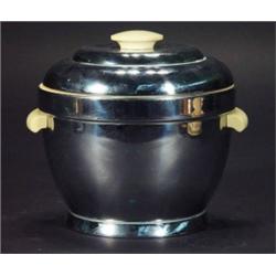 Art Deco chrome and cream Bakelite ice bucket, marks to base, 18cm high
