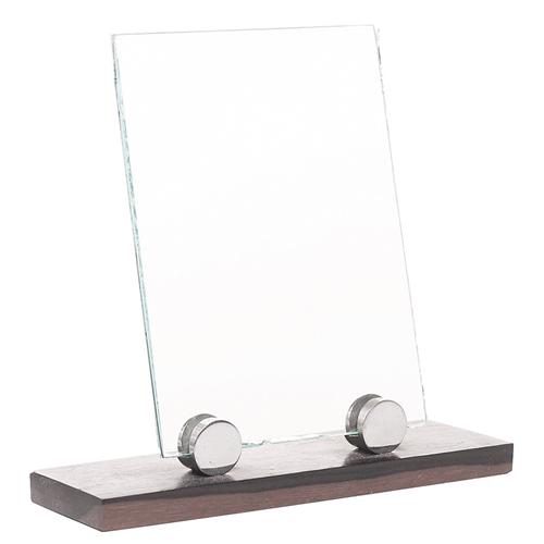 Art Deco frame, wooden base with chrome circular holders, 5.5"w x 5.5"h