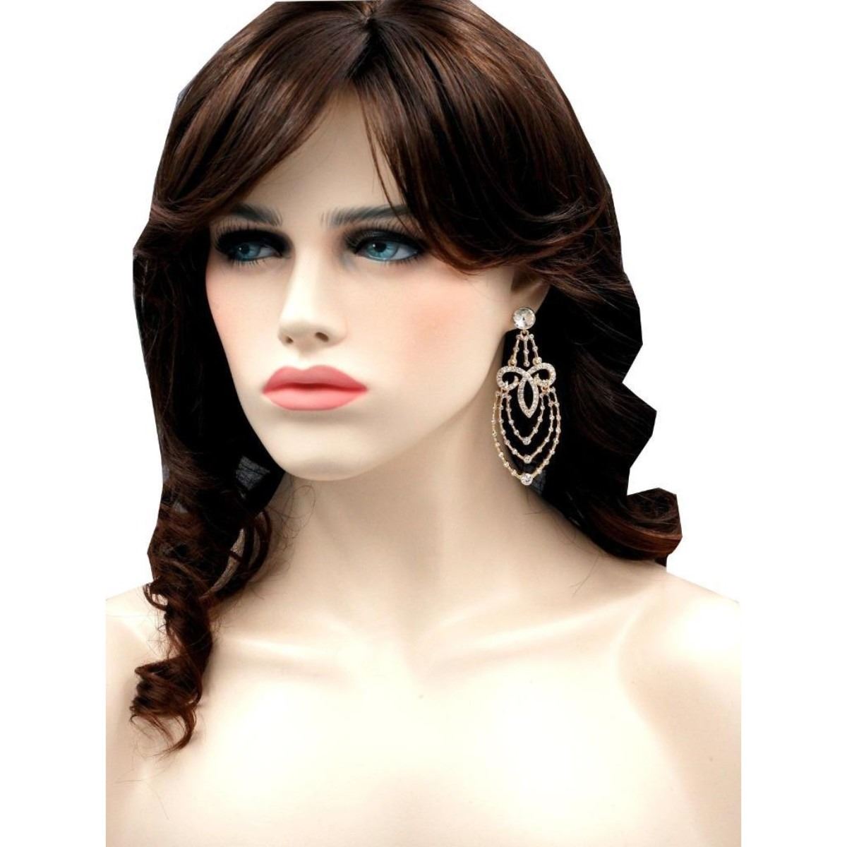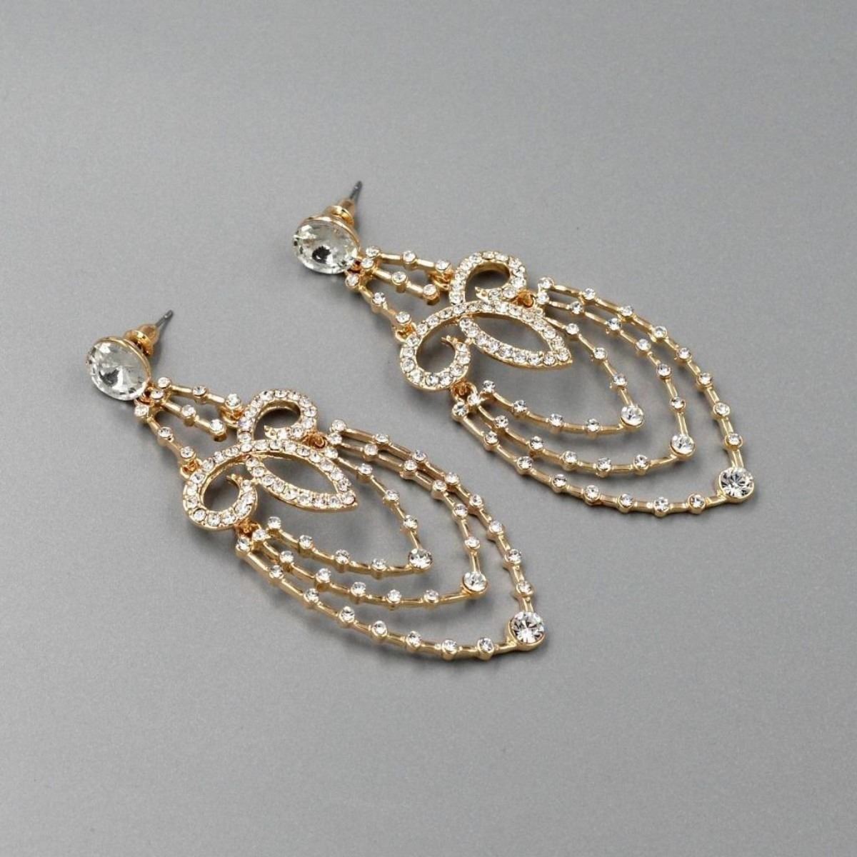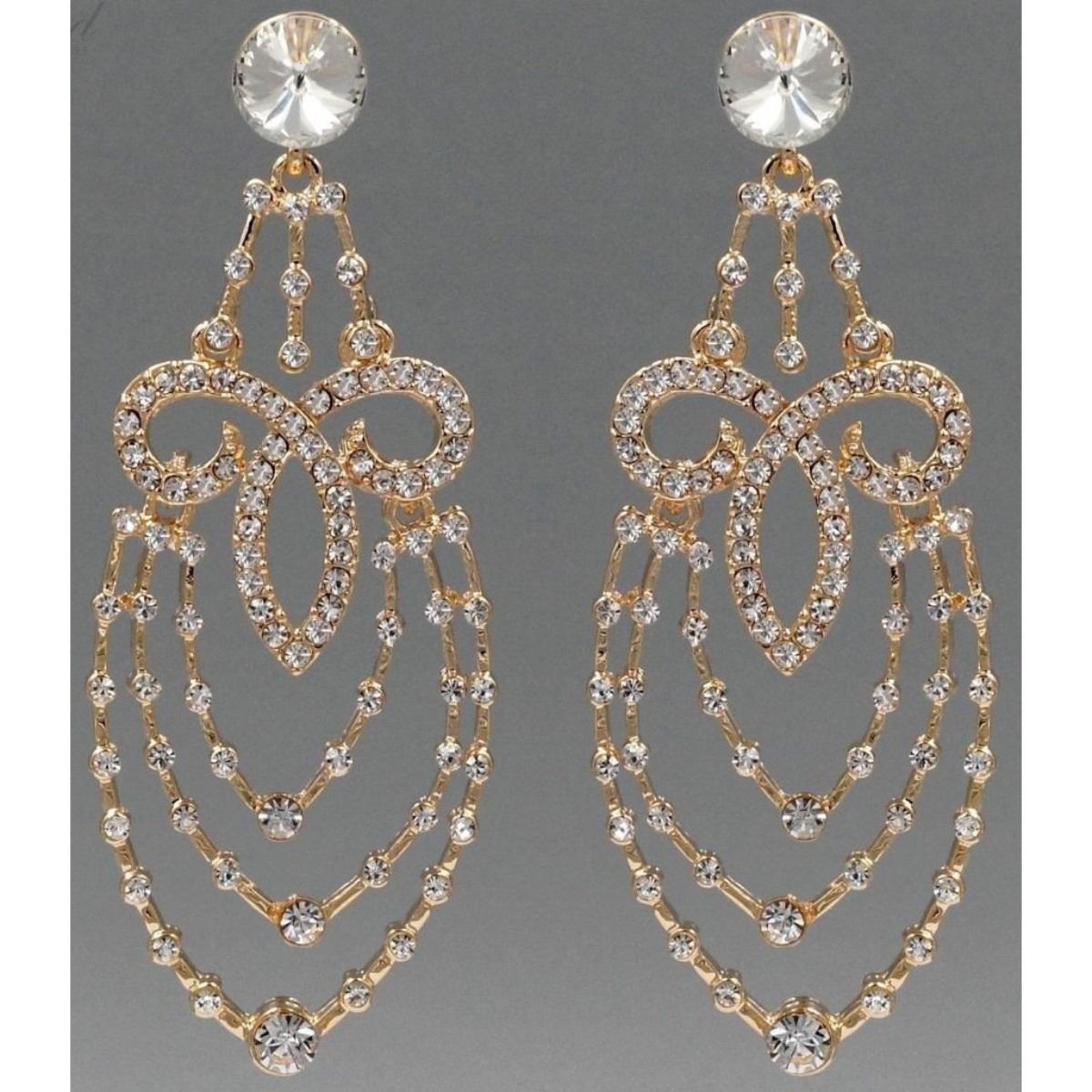 Art Deco-styling with clear Czech crystals & rhinestones set into 18kt gold plated chandelier drop dangle earrings. Length: 3.25" 9999-040118-EB-23507