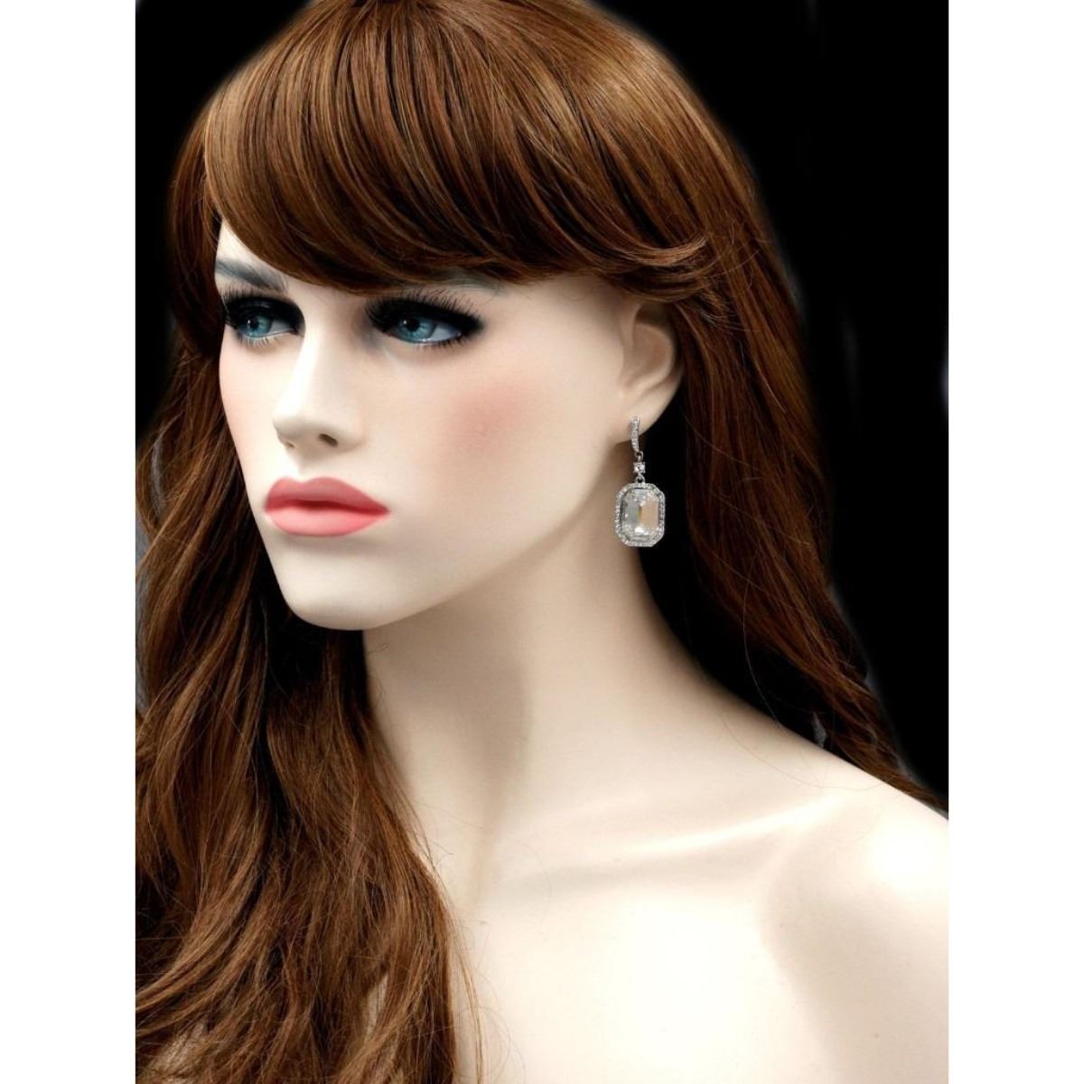 Art Deco Gatsby-style clear Czech crystals set into rhodium plated drop dangle earrings. Length: 1.75" . 9996-040118-EB-20718
