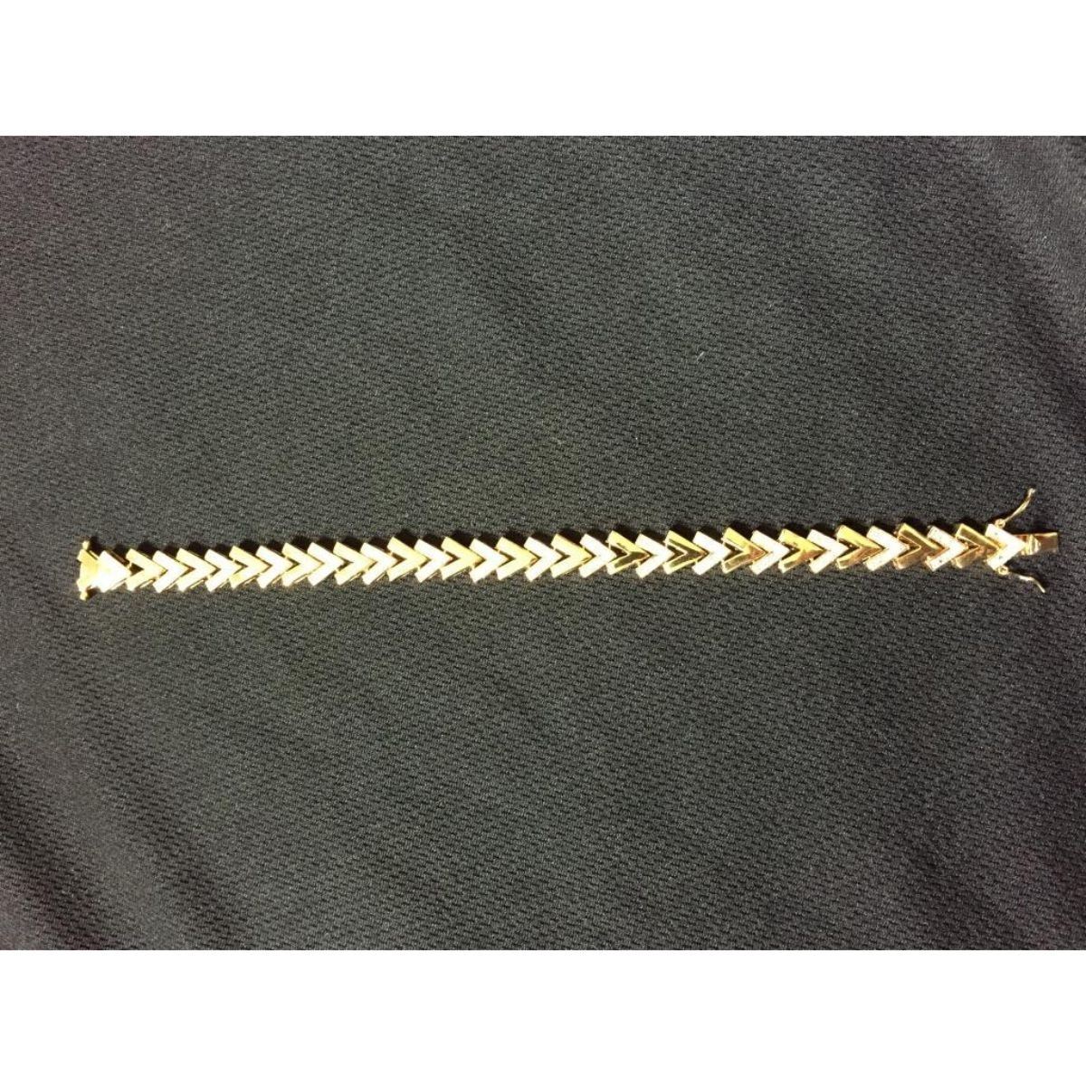 Twenty-five single cut diamonds ( 0.92ctw, I color, SI2 clarity ) set in 11.75 grams of sterling silver layered with 18kt yellow gold ( 18KGP stamp ). 7 1/2" L.