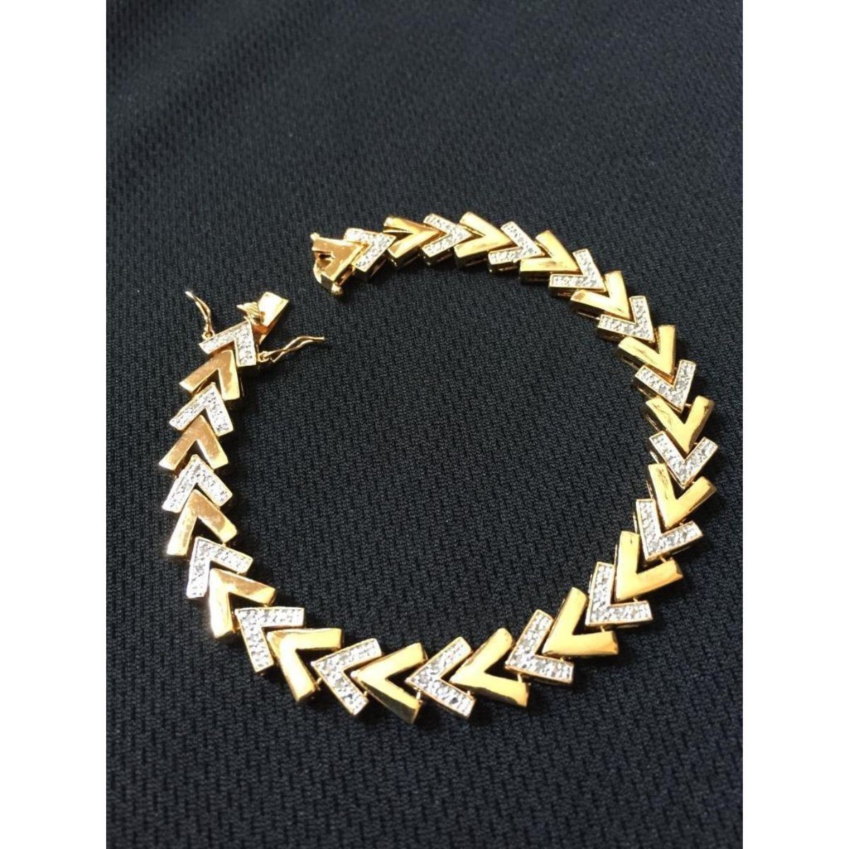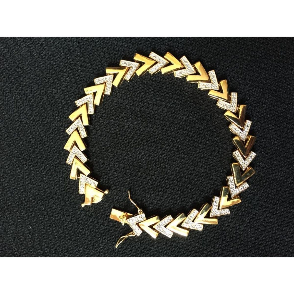 Twenty-five single cut diamonds ( 0.92ctw, I color,SI2 clarity ) set in 11.75 grams of sterling silver layered with 18kt yellow gold ( 18KGP stamp ). 7 1/2" L.