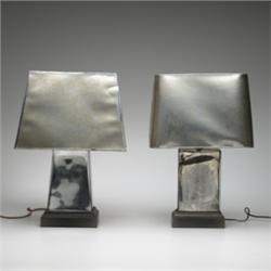 Art Deco table lamps, pair USA, c. 1930 Mercury glass, lacquered wood, silvered paper shades 12"w x 15"d x 22"h