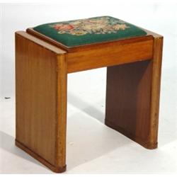 Art Deco walnut music stool the hinged seat with floral needlework upholstered seat