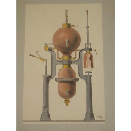 Art Deco watercolor Machine, Usa 1910 NO RESERVE