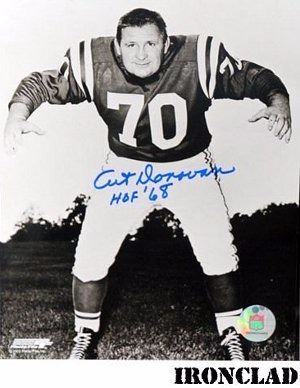 Art Donovan started playing professional football with the Baltimore Colts in 1950. He became one of the stars in an outstanding defense and was selected to five straight Pro Bowls for 1954 to 1958. The Colts won back to back championships in 1958 and 1959. He was selected to the Pro Football Hall of Fame in 1968. Art Donovan has hand autographed this Baltimore Colts 16X20 Photo with HOF 68 inscription. Ironclad Hologram and Certificate of Authenticity.
