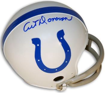 Art Donovan started playing professional football with the Baltimore Colts in 1950. He became one of the stars in an outstanding defense and was selected to five straight Pro Bowls for 1954 to 1958. The Colts won back to back championships in 1958 and 1959. He was selected to the Pro Football Hall of Fame in 1968. Art Donovan has hand autographed this Baltimore Colts Riddell Throwback 2bar mini helmet. Certificate of Authenticity from Athlon Sports Collectibles.