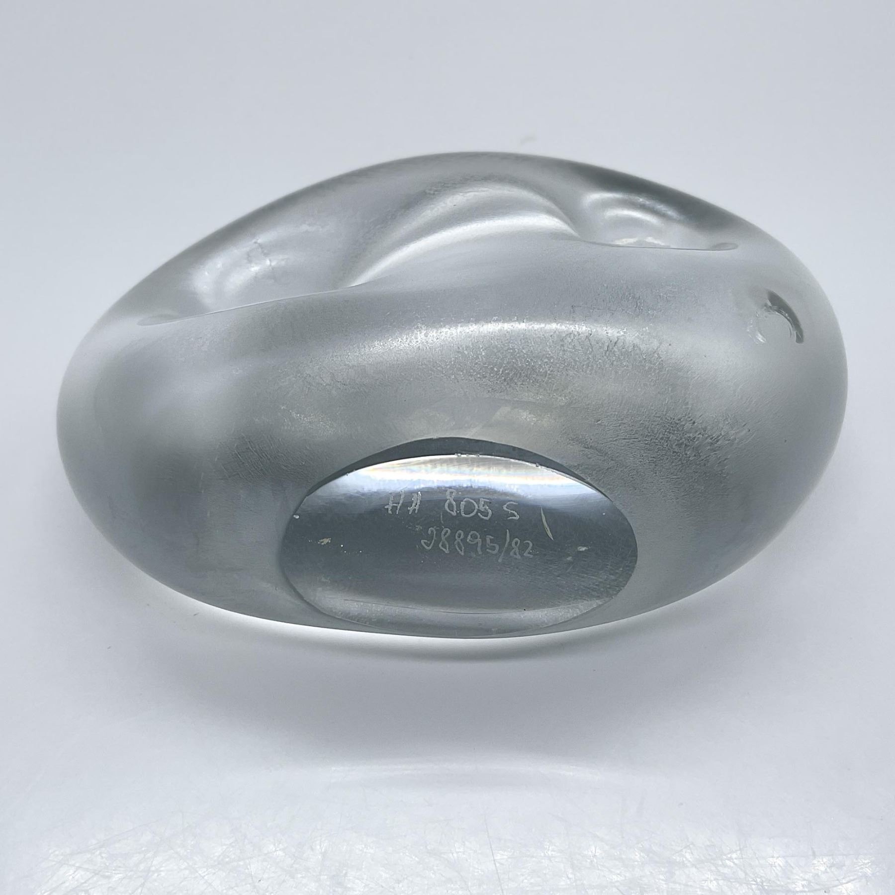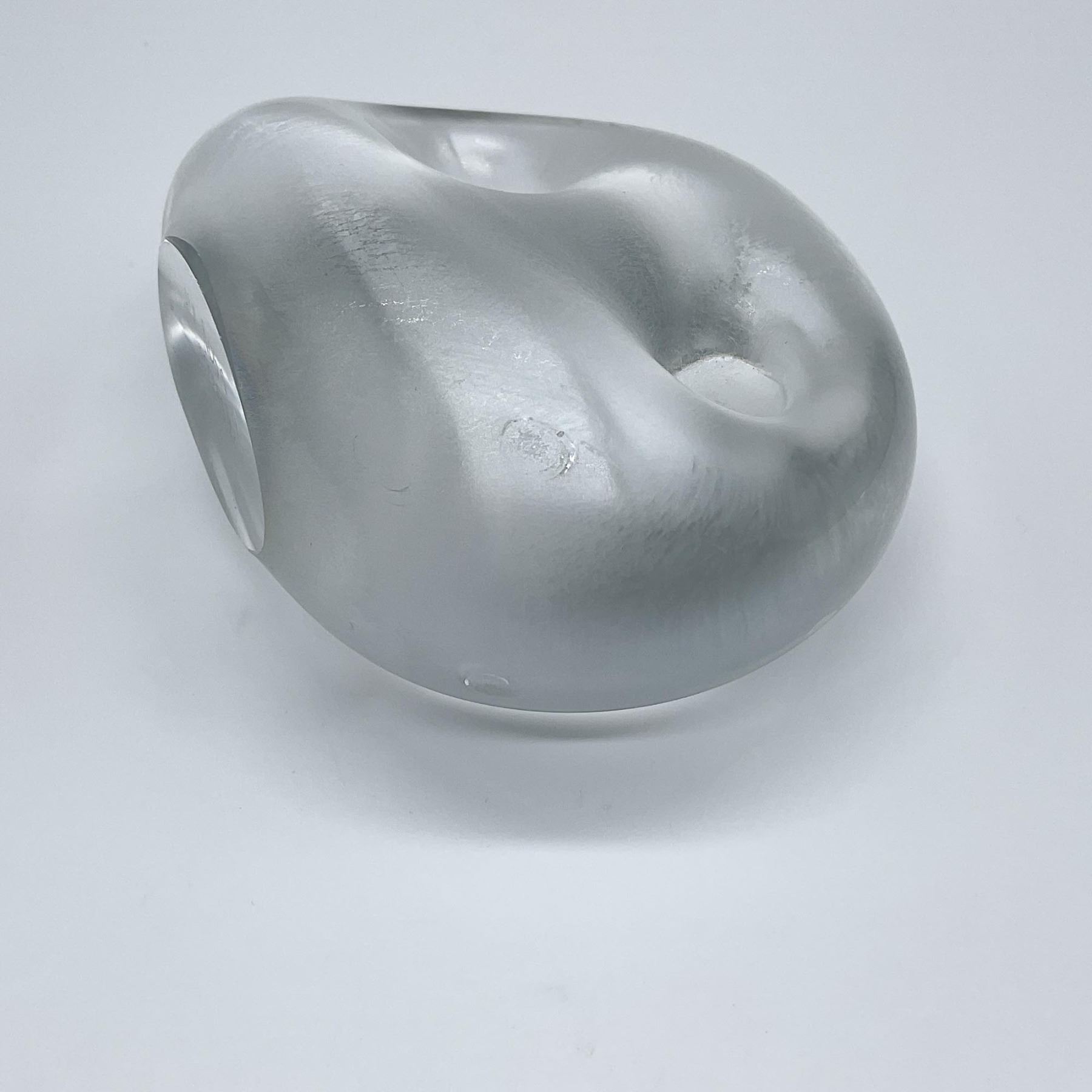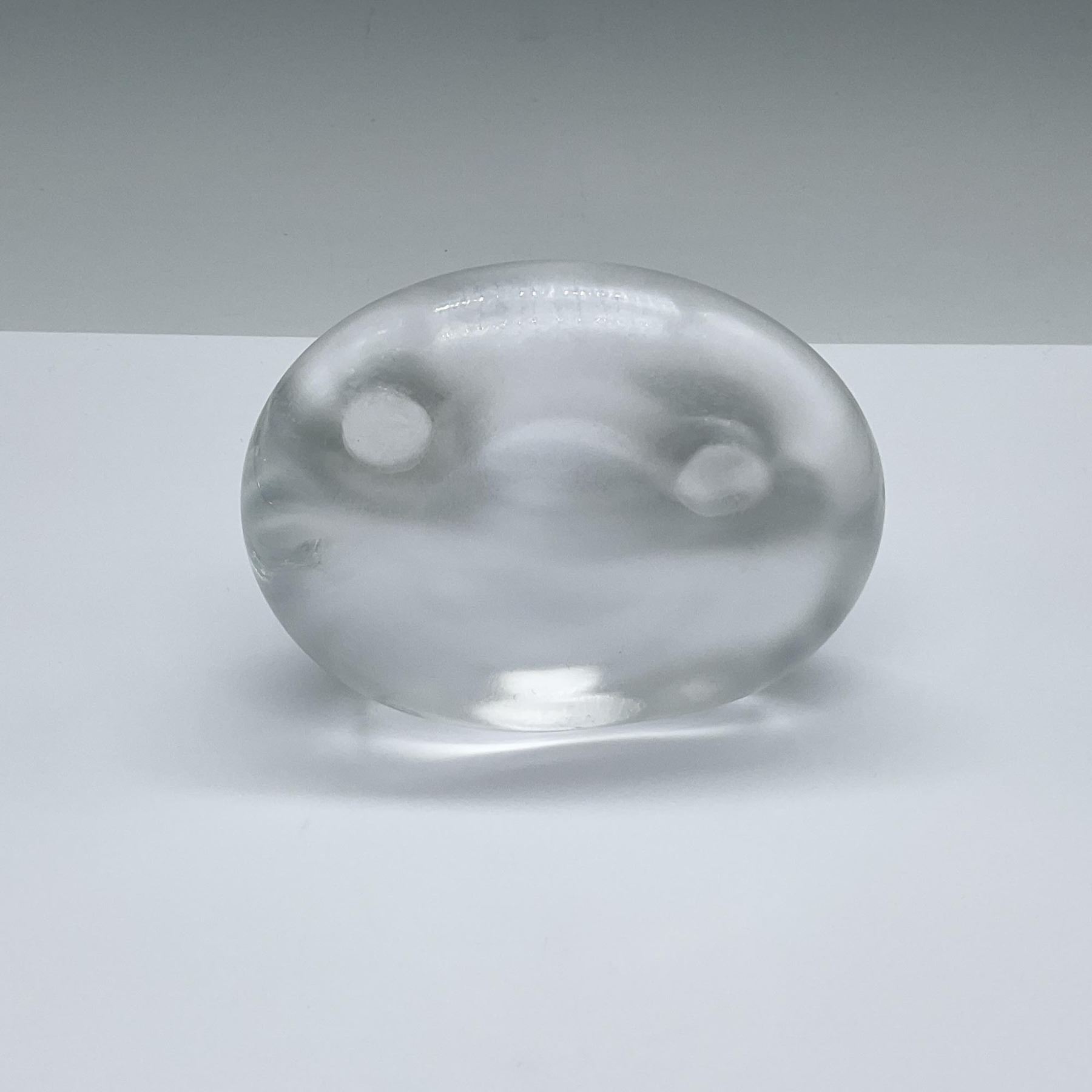 A semi-luster finish figure of a round face with only round sunken eyes as the feature. Marked on the underside.