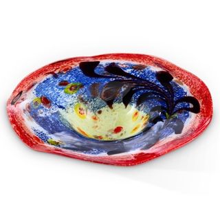 Art Glass Bowl - Uniquely Hand Crafted - 3.5"H X 15"Diameter - Blue & Red Tones