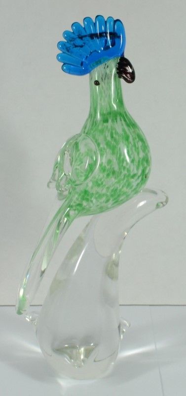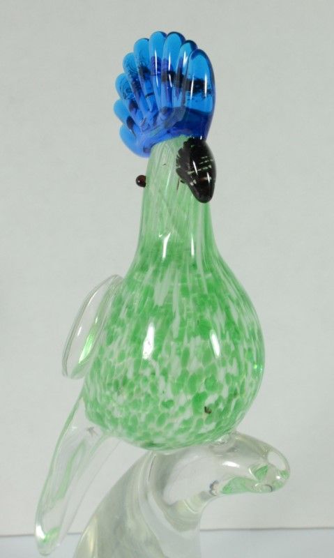 10" Tall Green Cockatoo with blue head-feathers. Est $25-$30