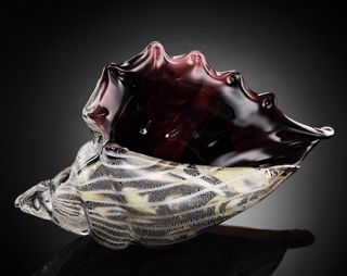 Art Glass Conch Shell - Black & Clear - 5.5"H X 9"W X 3.5"D - Hand Crafted