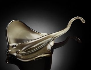 Art Glass Gray Sting Ray - 3"H X 12"W X 7.5"D - Hand Crafted