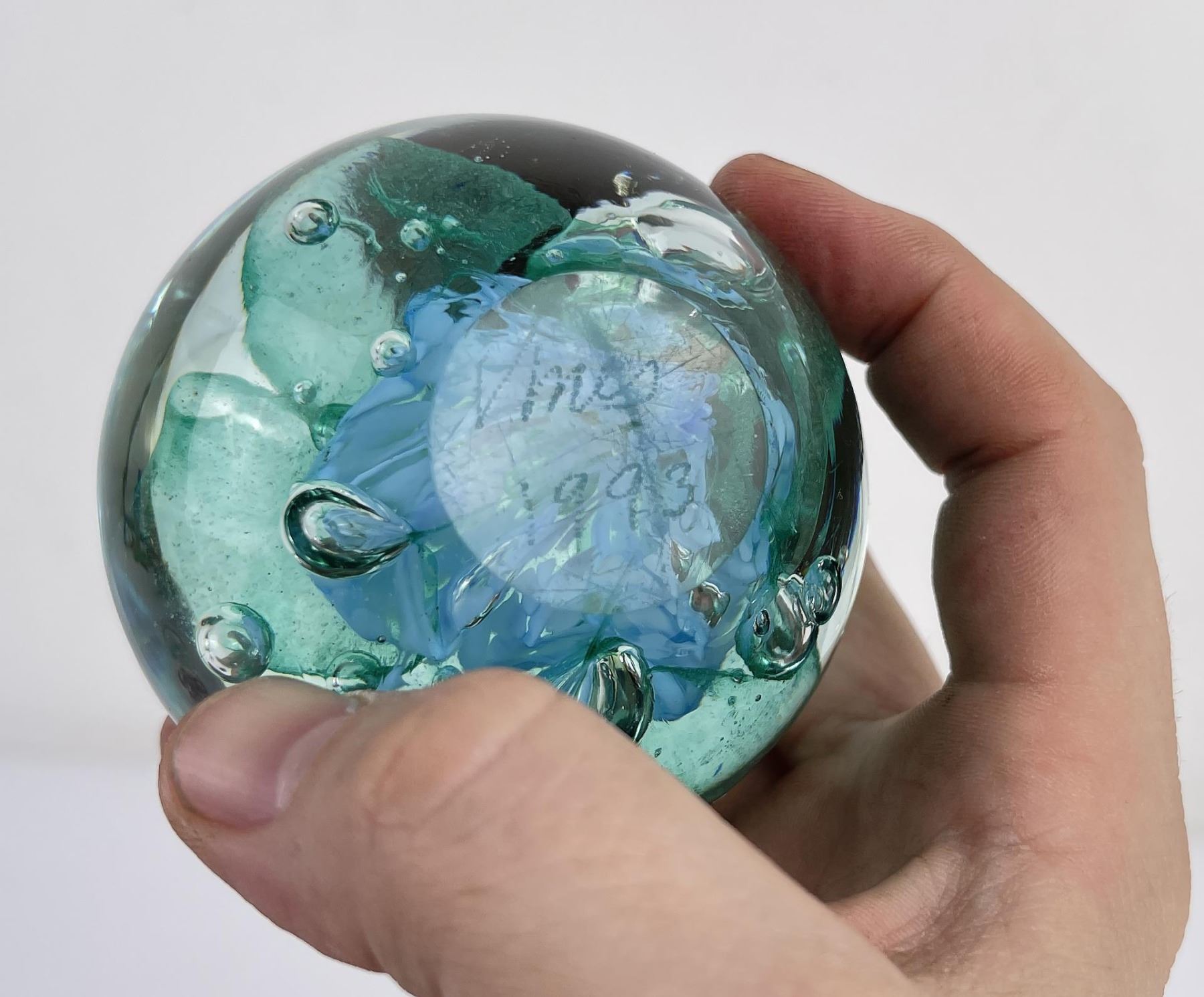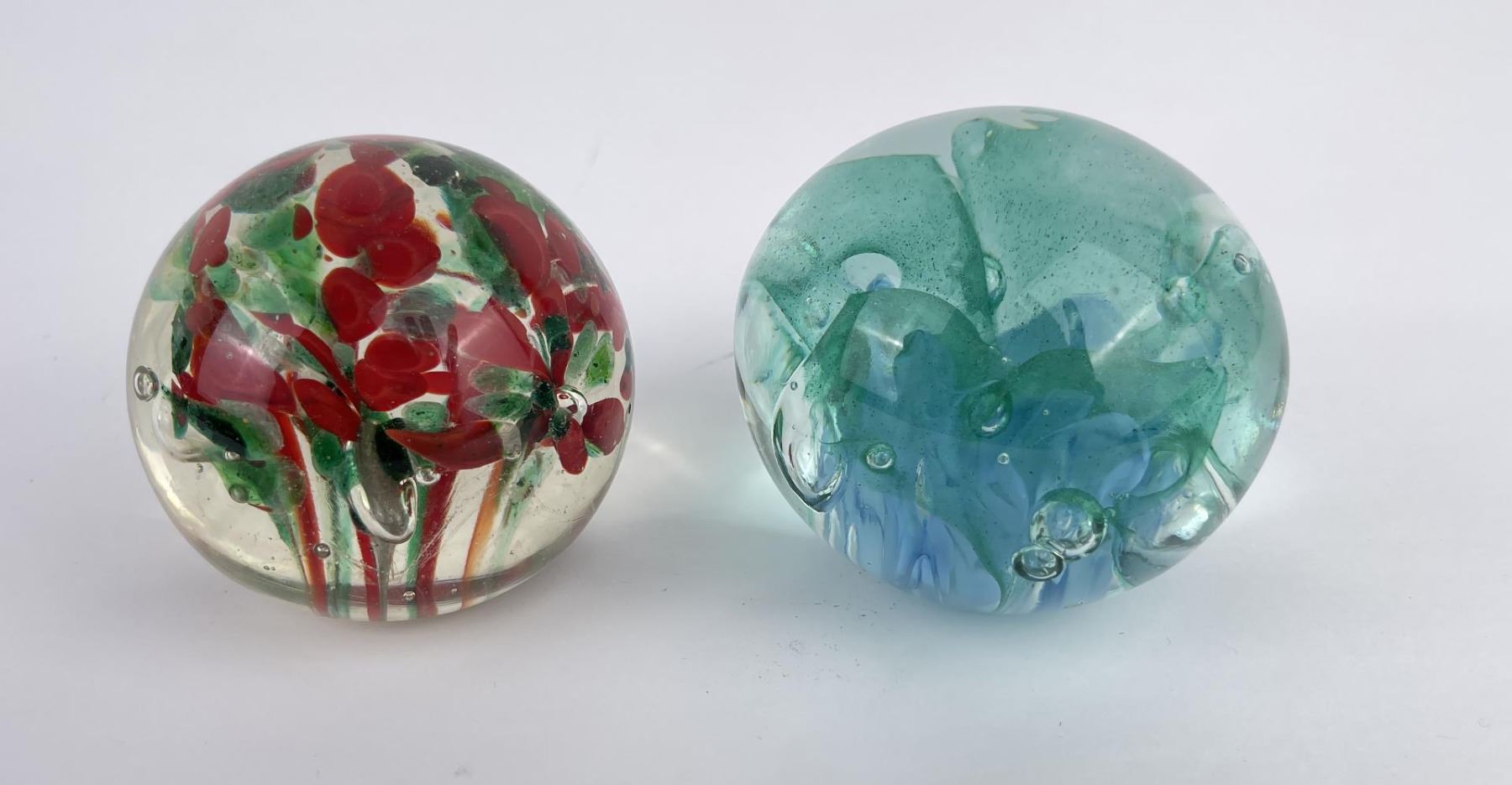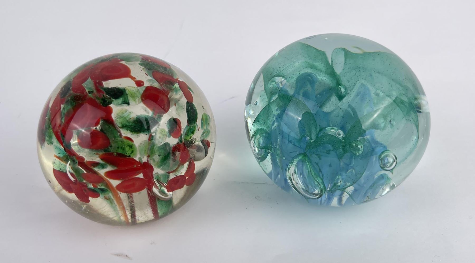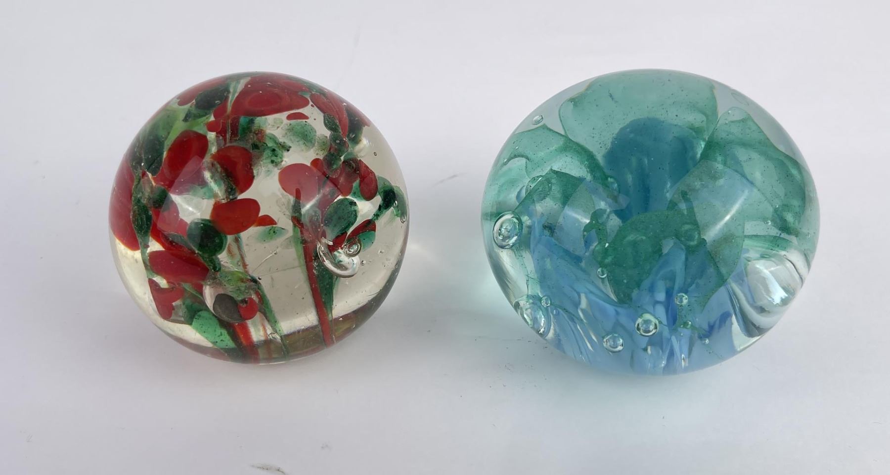 Lot of 4 very nice vintage art glass paperweights. One is Signed Jennings Bonnell, another is signed as shown. Vibrant colors in florals, butterflies and abstract composition.