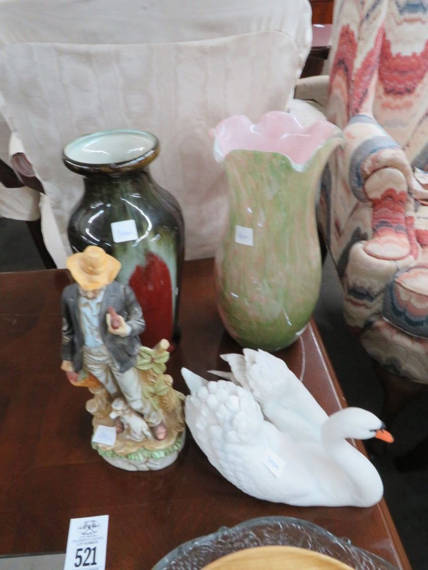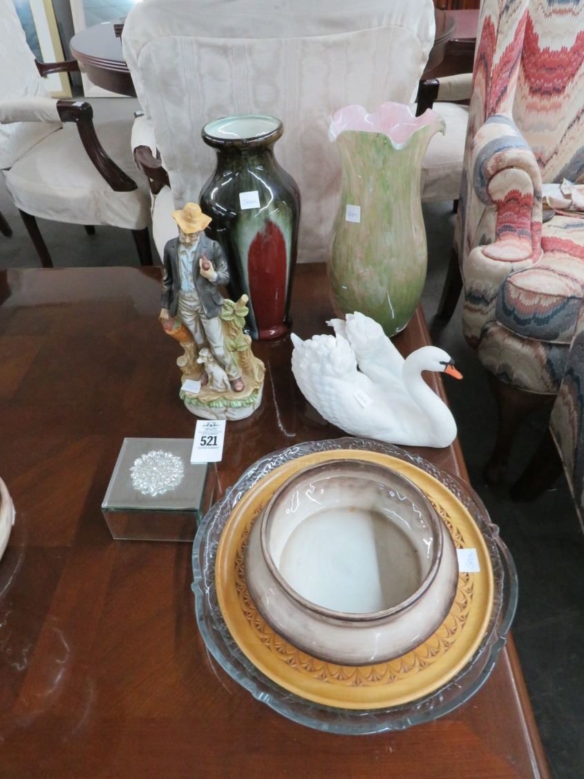 Art Glass and Glazed Vases, Figural Décor, Mirrored Box, Swan and Dishes