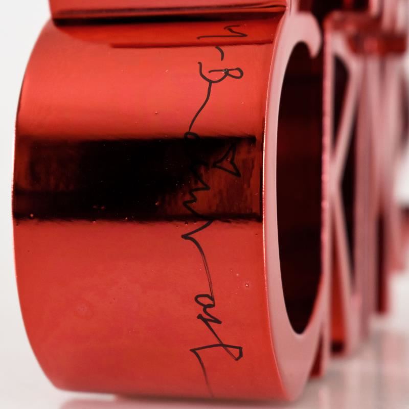 "Art Is Not a Crime (Chrome Red)" is a limited edition resin sculpture by Mr. Brainwash, numbered and hand signed by the artist. Includes Certificate of Authenticity. Measures approx. 8" x 6.5" x 2".