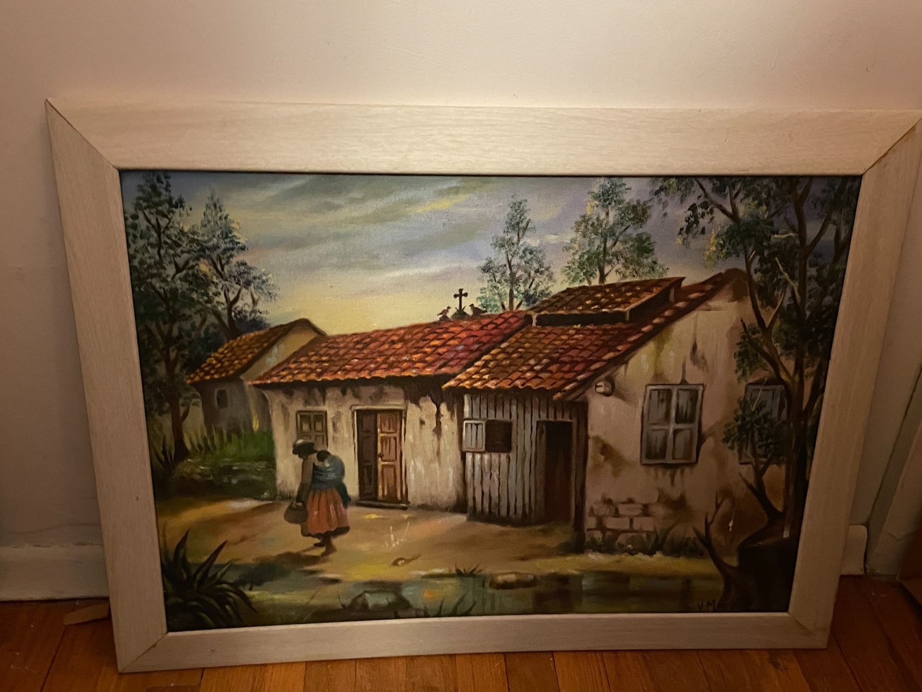 Includes Farm 2' wide x 21" tall - Waman in Village 22" wide x 17" tall - Barns 2' wide x 17" tall - Flowers 16" wide x 18" tall signed by B. Reagan