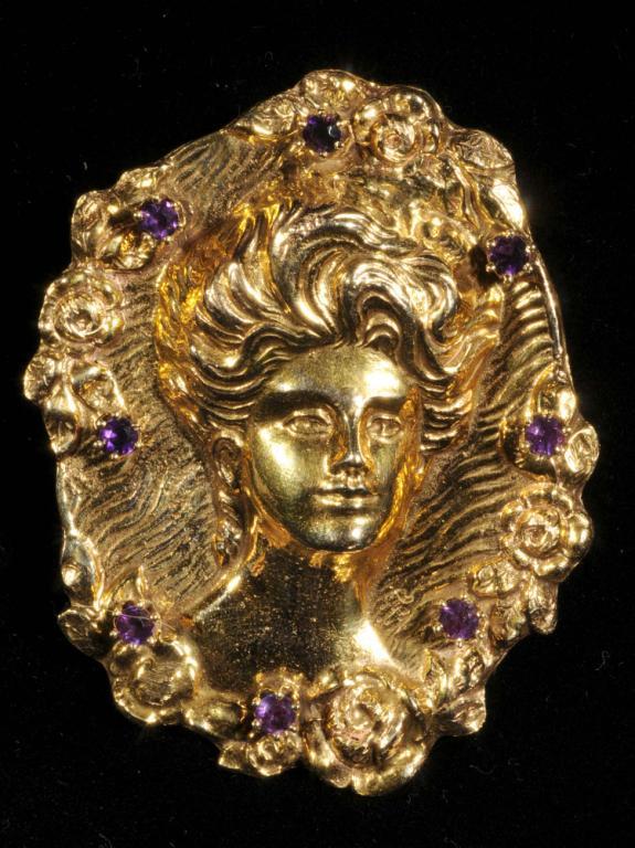 Heavy piece with amethysts. Jewelry Condition (Excellent). Size 2 - 1/2" L.