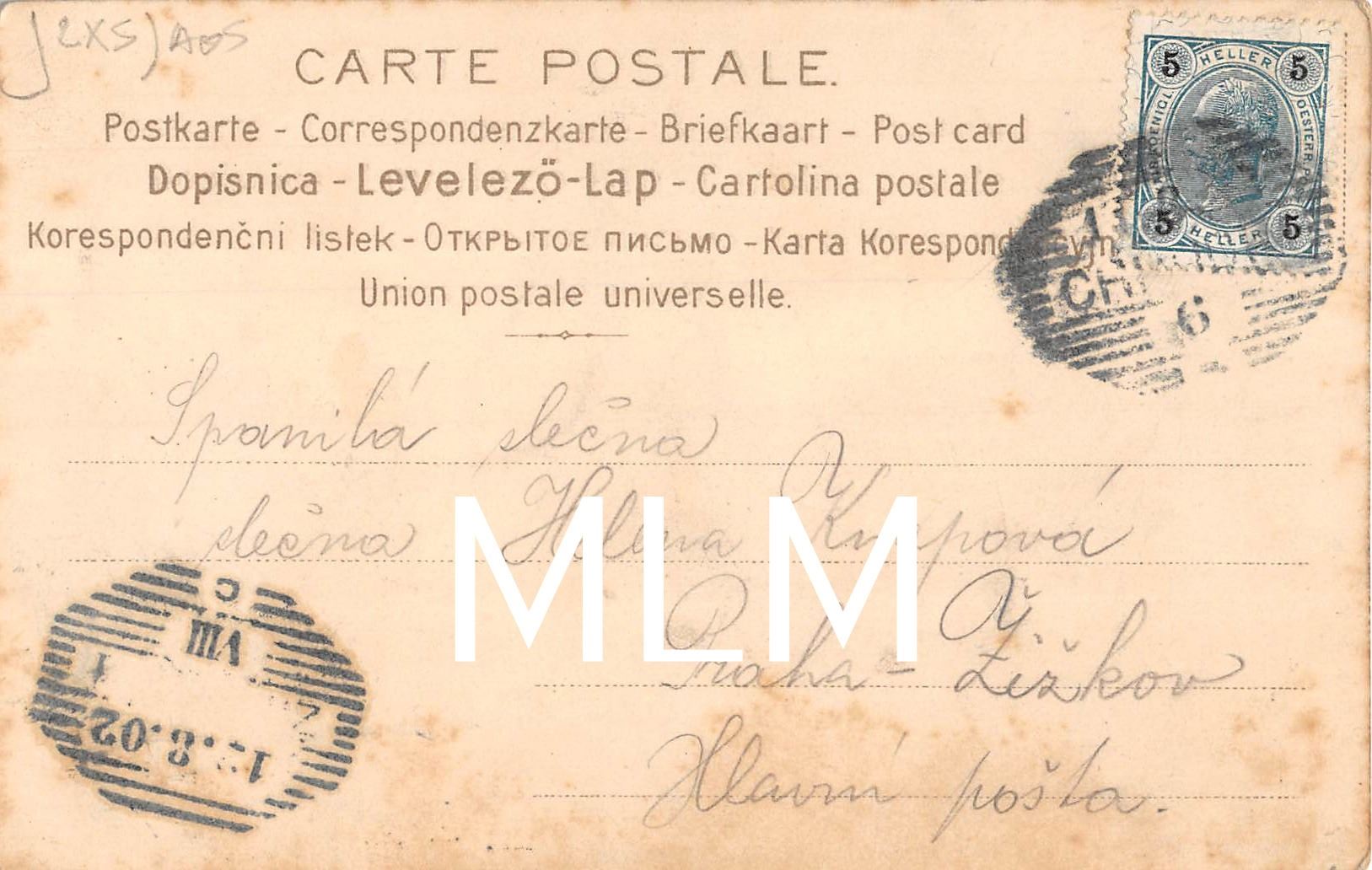 Faint corner crease and dull corners. Postal used.