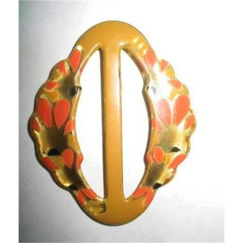 <tr><td>Title:Art Nouveau Hand Painted Celluloid Belt Buckle</td></tr>