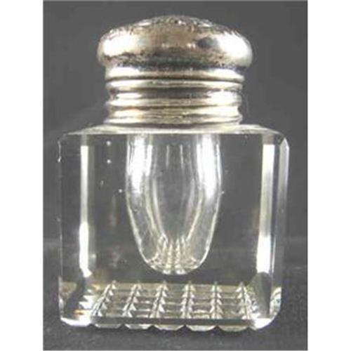 a pretty little Art Nouveau Sterling Topped Inkwell Marked on the top"Sterling" and with the Webster Company Logo. The lid snaps shut and is hinged. There is a square cut design to the base.