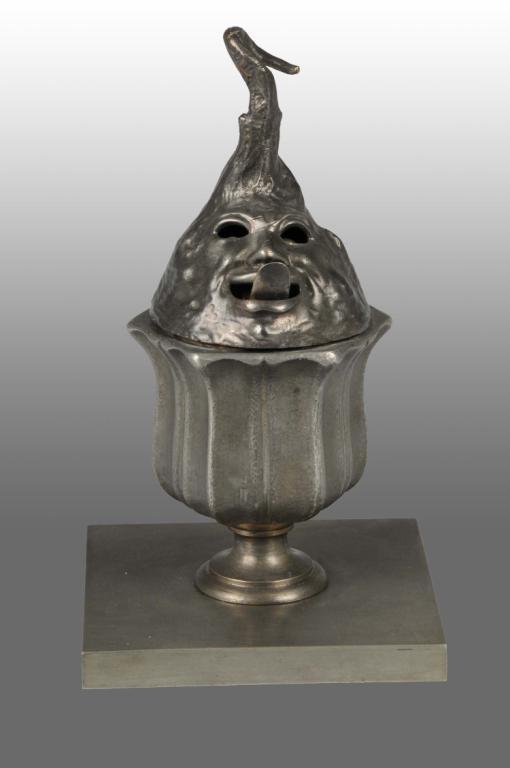 Description Circa early 1900s. Very decorative, unusual, rare and expressive inkwell with an amazing grotesque stereotype head with moveable eyes and tongue. Brass with pewter patina and glass inset. Condition (Excellent). Size 7” x 4” x 4”.