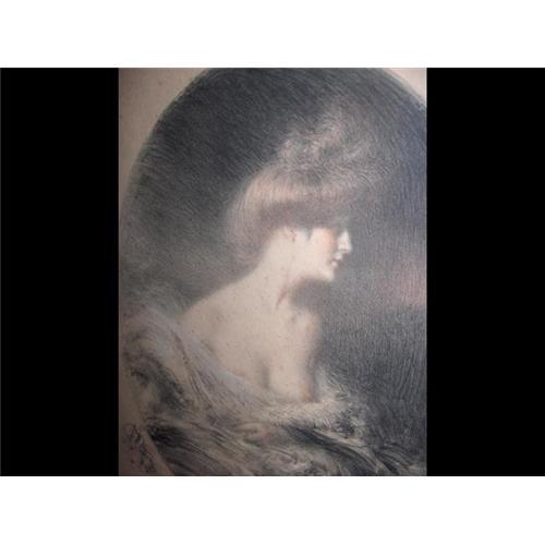A stunning Lithograph after CHARLES LEANDRE c1900 nicely signed and inscribed by the artist bottom right.Nicely framed and glazed and offered perfect.Depicting a scantily clad maiden of the era with a pensive air....delightful.