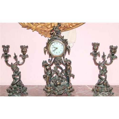<tr><td>Title:Art Nouveau Mantel clock Garniture </td></tr>