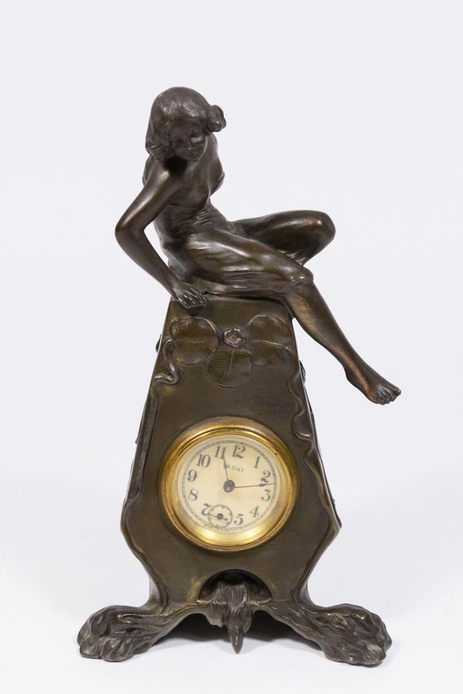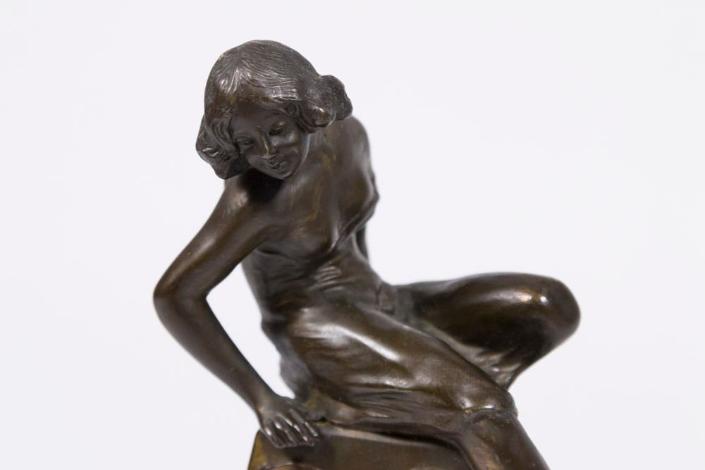 Woman seated. Claw foot. Bronze finish. Approx. 9 3/4" H. (6055) Not working.