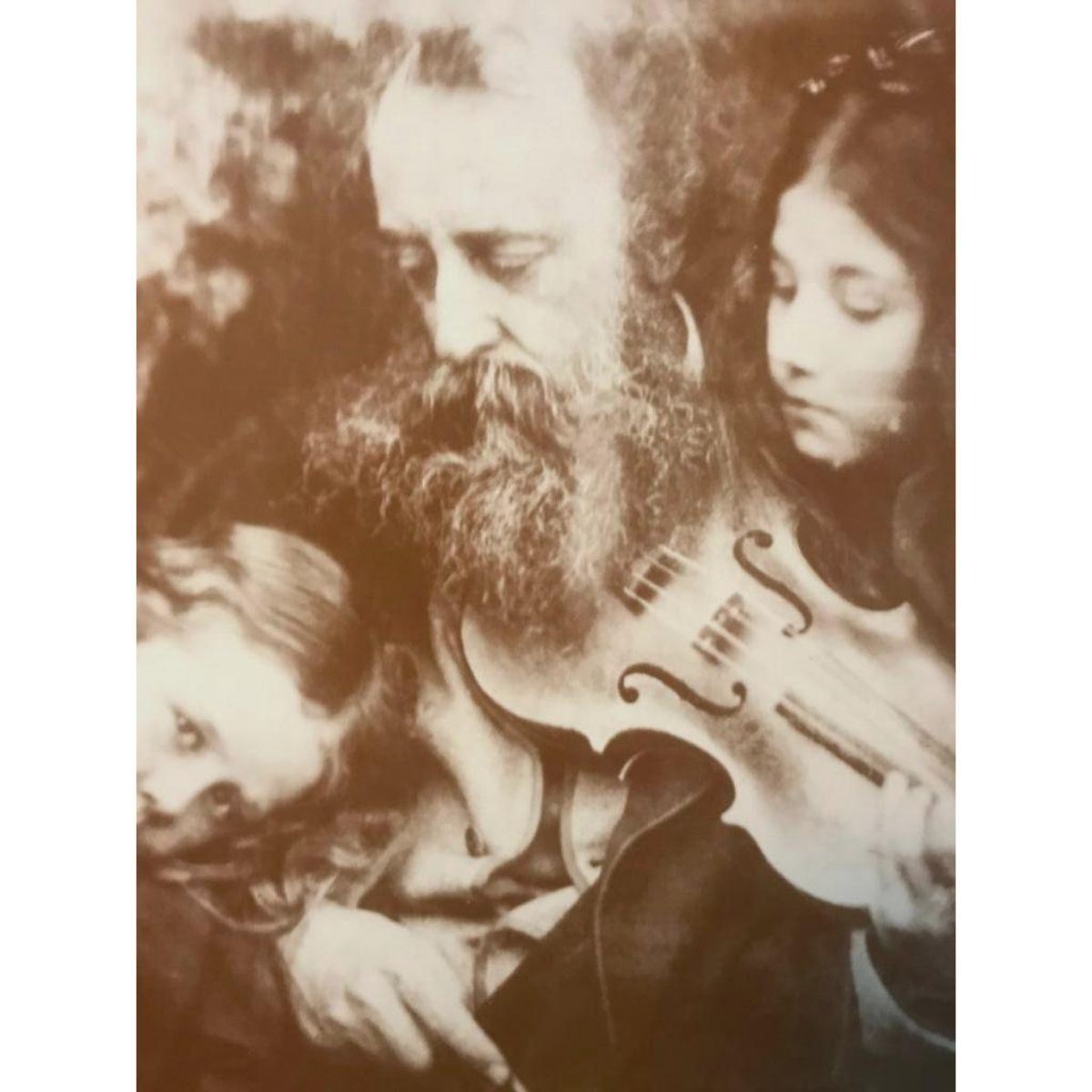 Art Nouveau scene of man with violin & two girls, sepia-tone print on heavy card stock, produced in the early 1990's for The American Heritage Gallery. 11" X 14" in original shrink-wrapped packaging.