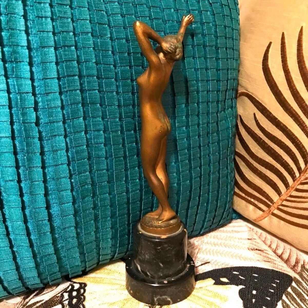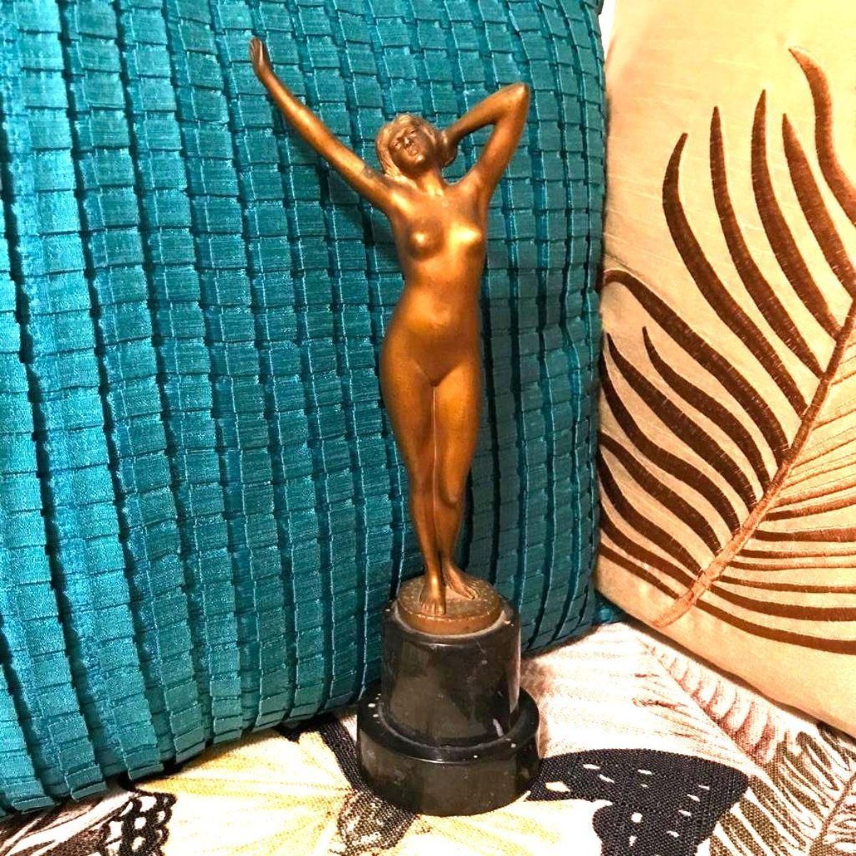Art Nouveau Gilt Bronze Nude Sculpture, "Awakening"Â by Percimer Rudolfi, on marble base. 10" H.Â