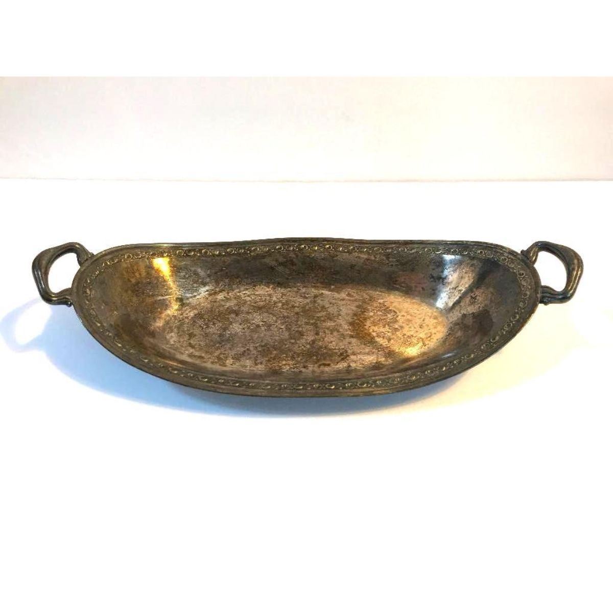 Art Nouveau silver-plate handled bread tray. Stamped "Apollo E.P.N.S., Made in USA by Bernard Rice's Sons, Inc. 5091". 14 1/4" L handle to handle, 6 1/4" W.
