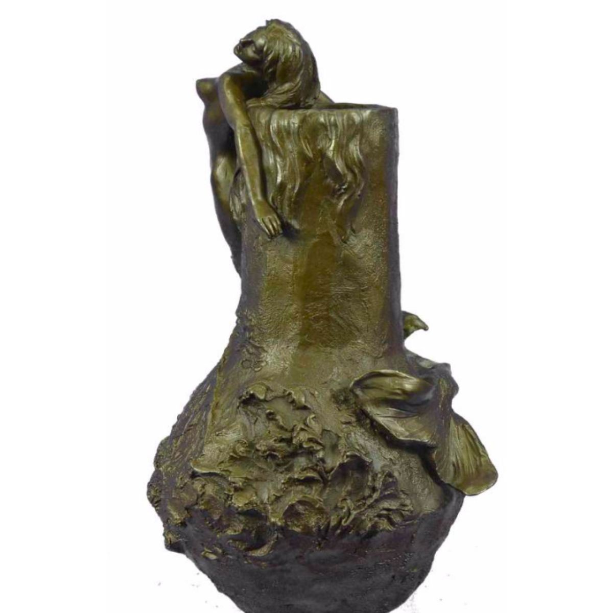 Art Nouveau-style vase, embellished with nude mermaid handle. Lost wax casting bronze, with brown patina. 14" H X 8" W. 12 lbs. Original sculpture signed by the artist, Aldo Vitaleh.Â