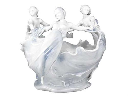 Colour painted porcelain. Round base, nymphs singing and dancing. Restored. Stamped mark on the bottom: Förster. Alexander Förster, Wiener Kunstkeramische Fabrik Förster & Co. Circa 1900 Size: 22 cm