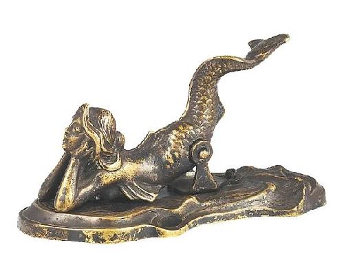 Cast bronze with patina. Art Nouveau style base depicting a mermaid leaning on her elbow. German, circa 1900 Length: 12.5 cm
