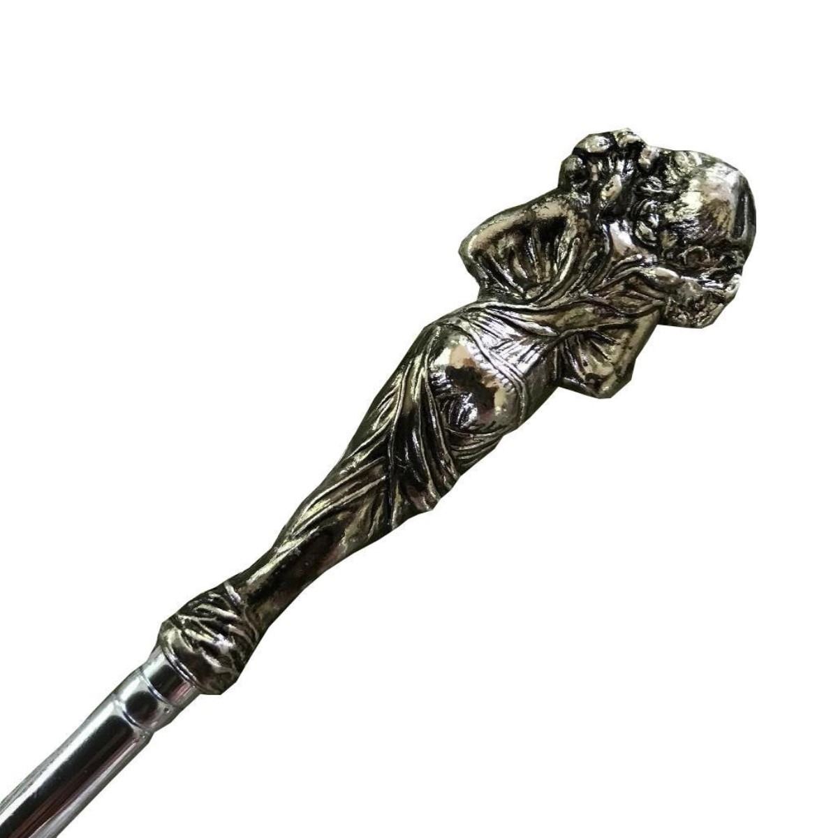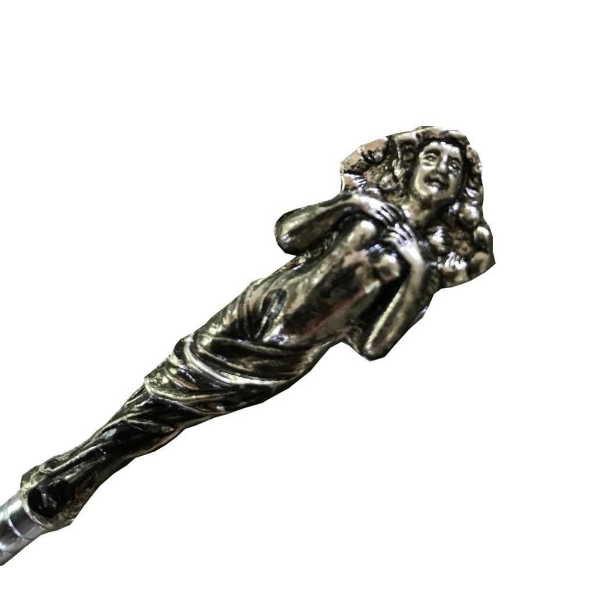 New, Art Nouveau-style silver plate cosmetic brushes, dresser set. Consisting of large & small powder brushes & an eyebrow brush/ comb with silver plate classical maiden handles. Comes with velvet carry case.