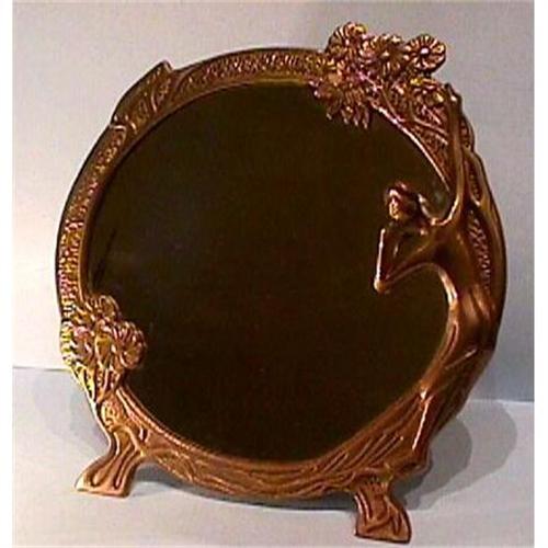 <tr><td>Title:Art Nouveau WMF Style Nymph Brass Mirror</td></tr>