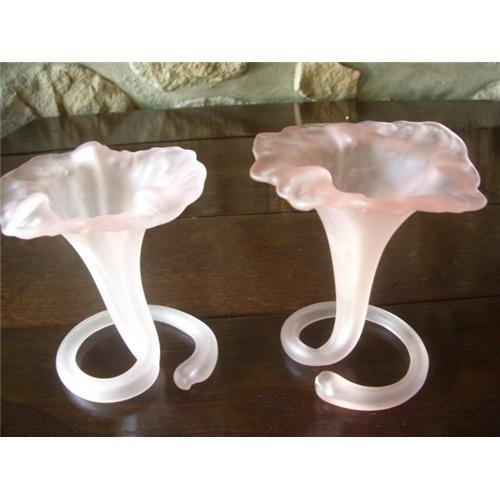 A lovely pair of French Frosted Glass Trumpet vases dating from around 1905 in excellent condtion having a lovely fluted and scalloped edged top to the elegant curved bases.