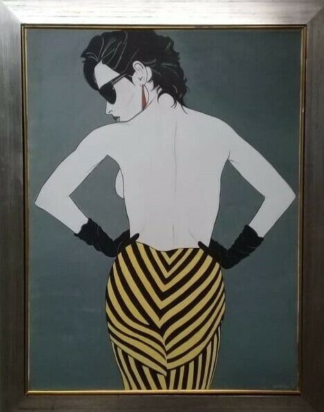 * 1983 Signed Piece . Américan Artist Patrick Nagel (In the manner of). Dated Lower right . *** Acquired by owner in the mid 90's /*** * Measures : 31 x 24 Inches / 36 x 29 "Framed" **** Title: "Striped Pants" , Tracy Vaccaro is his model Here. (Playboy 1980s) **** Shipping To Worldwide.