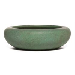 Art Pottery bowl, covered with a mottled green matt glaze, 9”w, nice Arts & Crafts piece