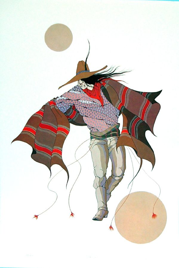 Art Print ''Stomper'' by Diane O'Leary. 22''H x 15'' W. #74/975. A member of the Comanche Indian tribe, Diane O'Leary became a painter of subjects reflecting her Native American culture, especially the life of women. She attended school in Fort Worth, Texas, and then went to schools at Texas Christian University and Bacone College in Muskogee, Oklahoma where her family was located.