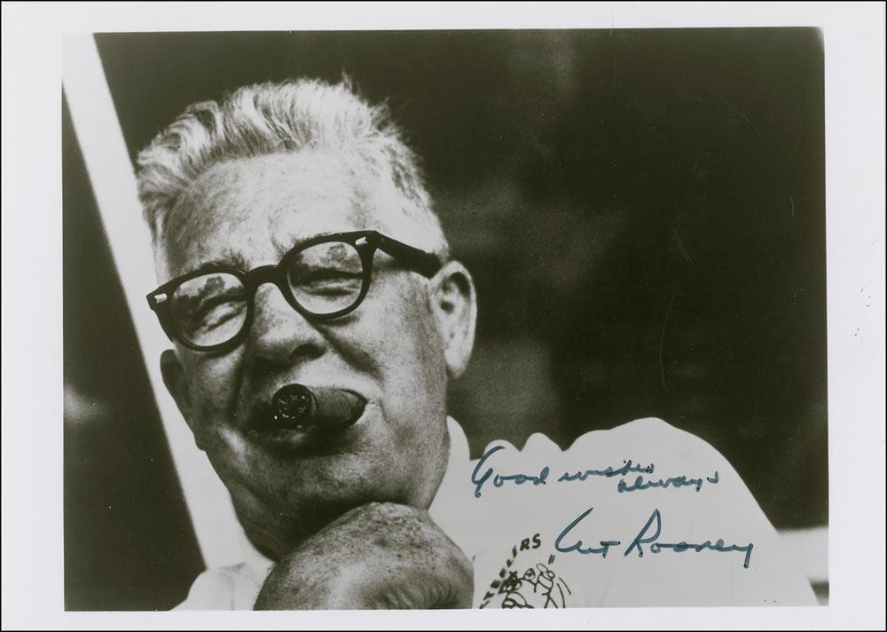 Football Hall of Famer and founding owner of the Pittsburgh Steelers (1901–1988) Glossy 7 x 5 photo of Rooney enjoying a sizable cigar, signed in black felt tip, “Good wishes always, Art Rooney.” In fine condition.