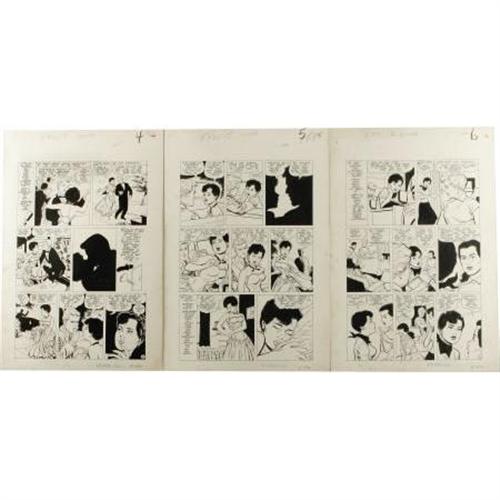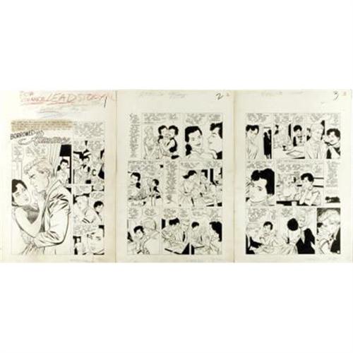 <B>Art Saaf and Mike Peppe - Intimate Love #27, Complete 8-page Story "Borrowed Romance" Original Art (Standard, 1953).</B></I> Art Saaf's superb art is the highlight of this eight-pager. Alex Toth revolutionized the art of romance comics in the fifties and set the direction for the "house style" at Standard Comics. Many artists, such as Art Saaf, Ross Andru, Gene Fawcette, and others, picked up on Toth's trend-setting techniques and streamlined, sophisticated storytelling was the result. The image area of each page measures 12" x 18", and the condition is Excellent. <BR><BR><b>Shipping:</b> Flat Material, Large (<a target="_blank" href="http://www.heritageauctions.com/common/shipping.php">view shipping information</a>)