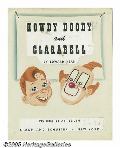 <B>Art Seiden - Little Golden Book #121 "Howdy Doody and Clarabell" Original Art, Group of 28 (Simon and Schuster, 1951).</B></I> Art Seiden painted twenty-eight interior illustrations for <B>Howdy Doody and Clarabell</B></I>. Howdy and Clarabell the clown's adventures in and out of the circus are detailed in these lighthearted gouache on board paintings. Each illustration measures approximately 6.25" x 8". Clarabell takes center stage in the yarn and plays with a cow, a seal, a traffic cop, a midget, and a crew of firemen. Some of the pasted-on, typeset captions have slipped off of the pages; otherwise the art is in Very Good condition.<I>From the Random House Archives</B></I>.
