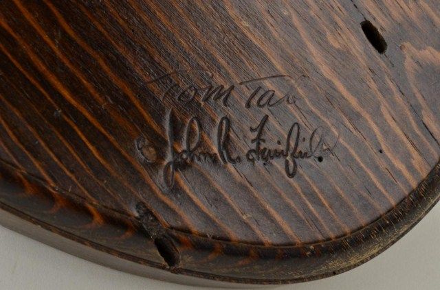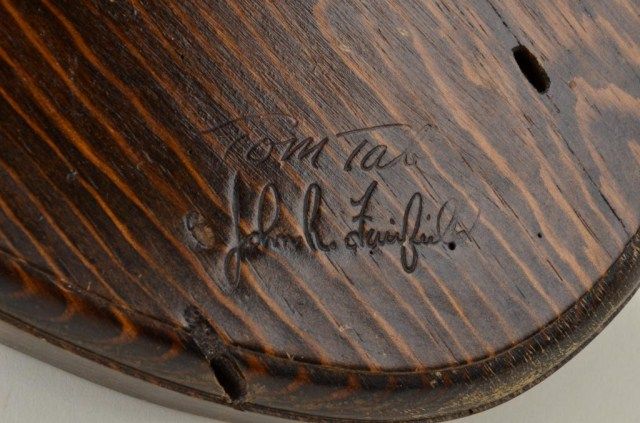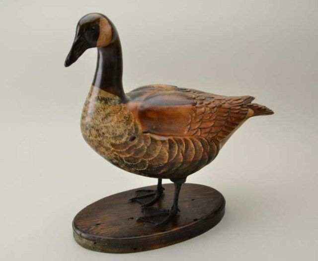 Art carving of duck nicely painted with bronze feet, glass eyes, signed on base “Tom Tab and John R. Fairfield” Measures 21” in height by approx. 23” in width fine condition. Est.; $300-$600