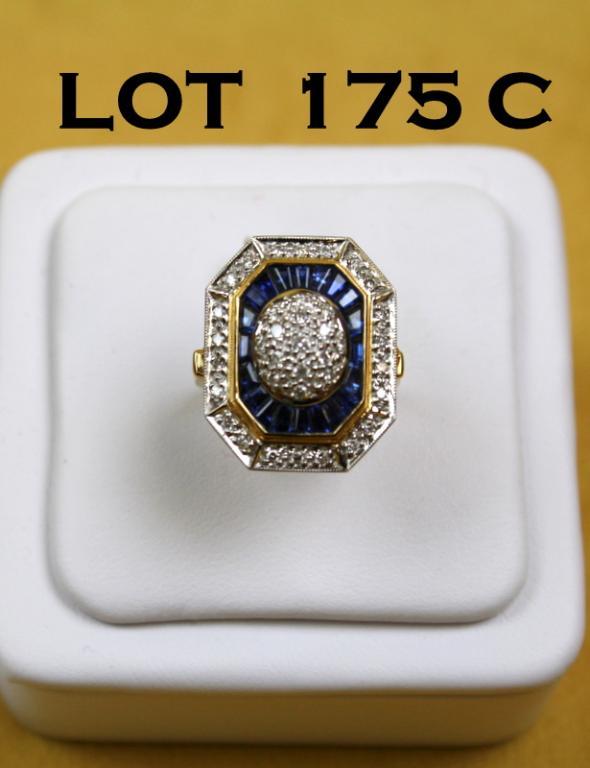 Art deco style two-tone ladies ring set made in 14kt yellow gold with sapphires and diamonds. Est: $ 1,000- $1,500.