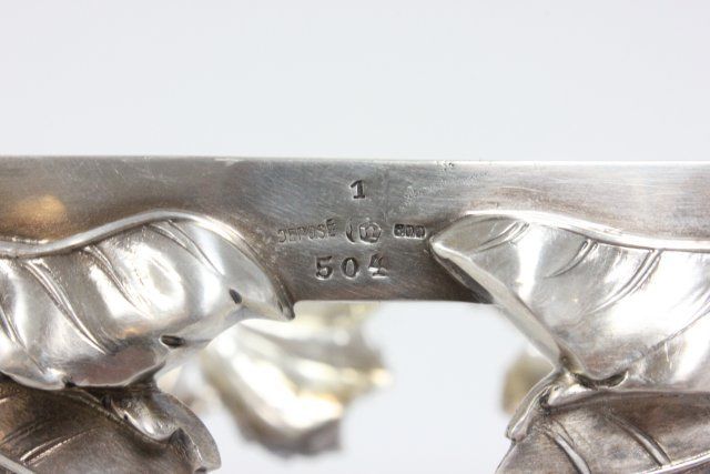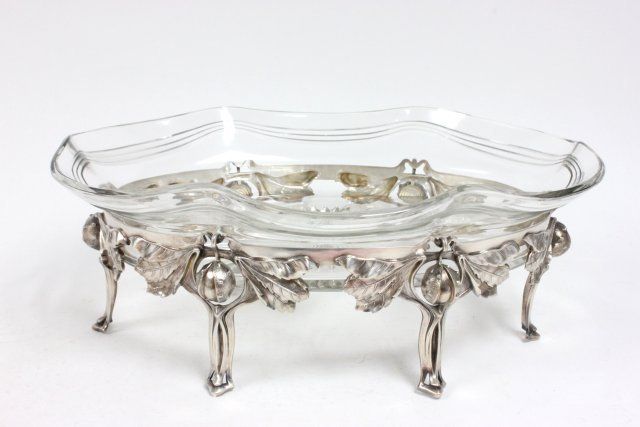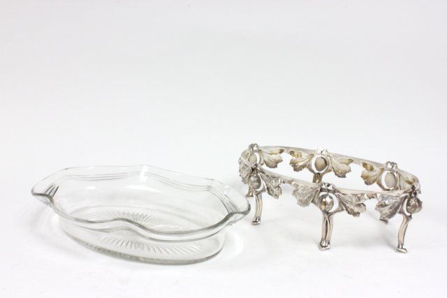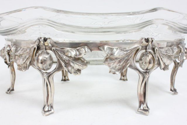 Spectacular, with glass insert, decorated with "Chestnuts & Leaves". Approx. 28 ozt, 16.25" L x 12" W x 6.5" H.