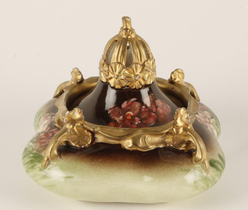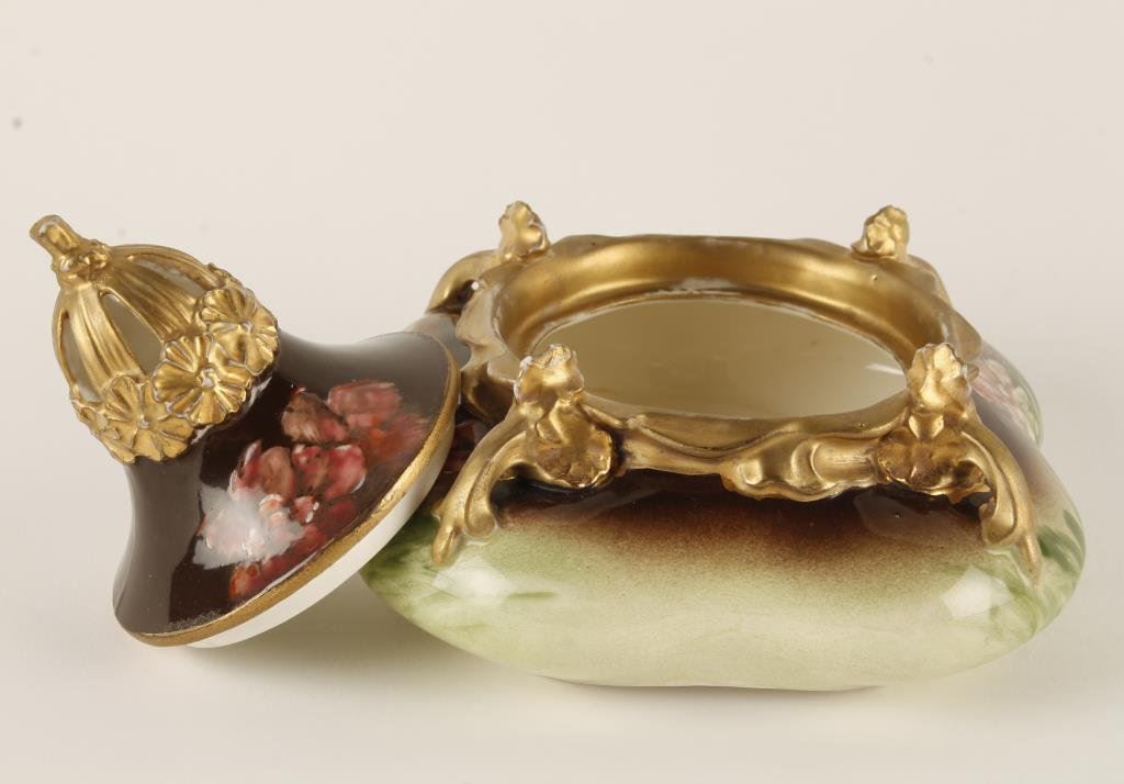 Art nouveau covered jar for ladies vanity signed and from Carlsbad, Austria. Est.: $200-$400