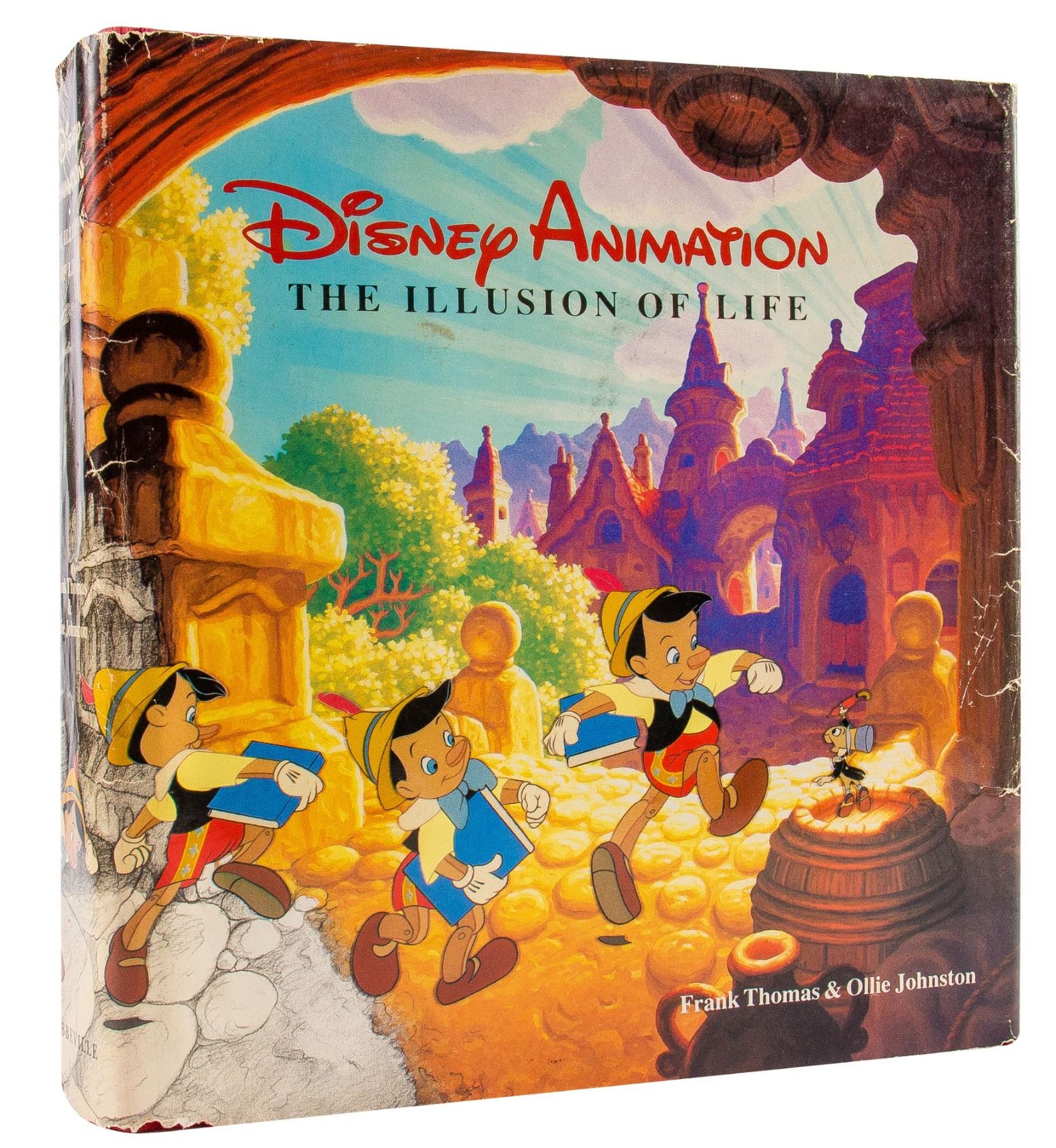 (1958/81) A pair of books on Disney animation from the personal collection of Rolly Crump. These books, "The Art of Animation" by Bob Thomas and "The Illusion of Life" by Frank Thomas and Ollie Johnston, are two of the greatest references for Disney animation history that have ever been assembled. These books provide a fascinating look at the studio and are full of images of the animation artwork which helped create some of Disney's greatest films. The books measure 11.25"x8.5" and 11.25"x10.75" respectively, and are in good condition with some edge-wear from age and Crump's personal use.