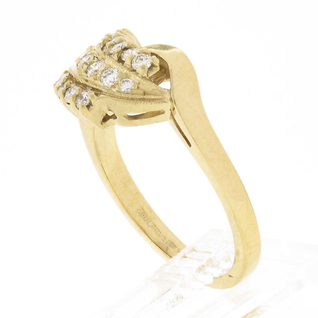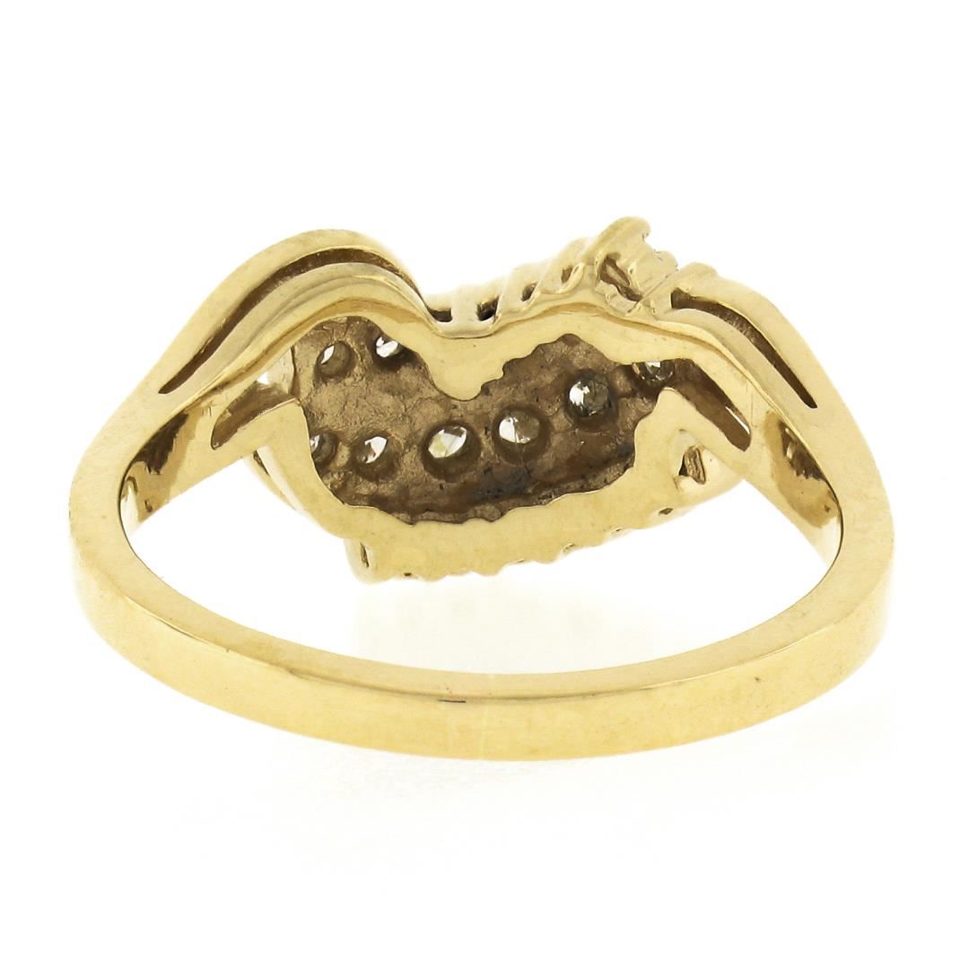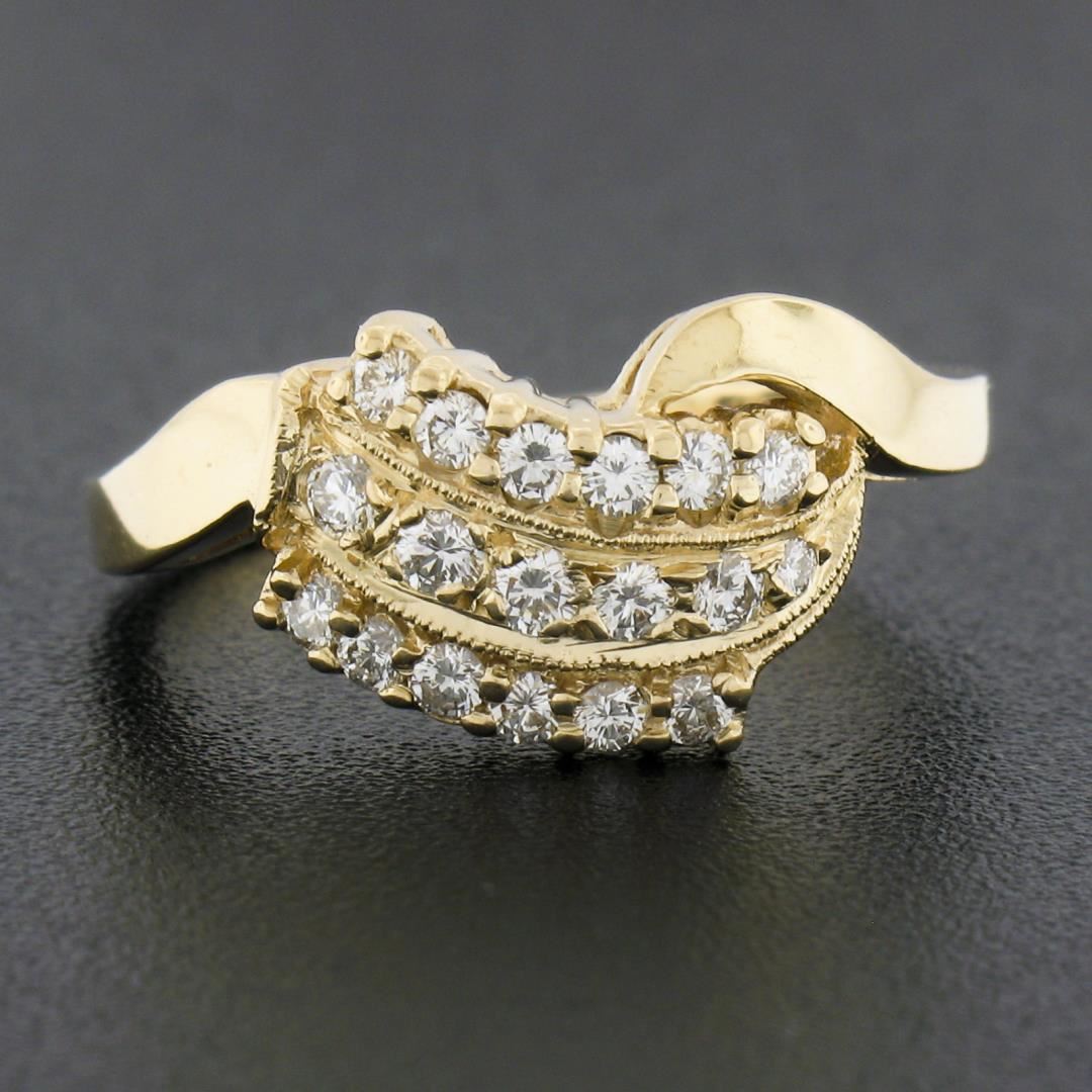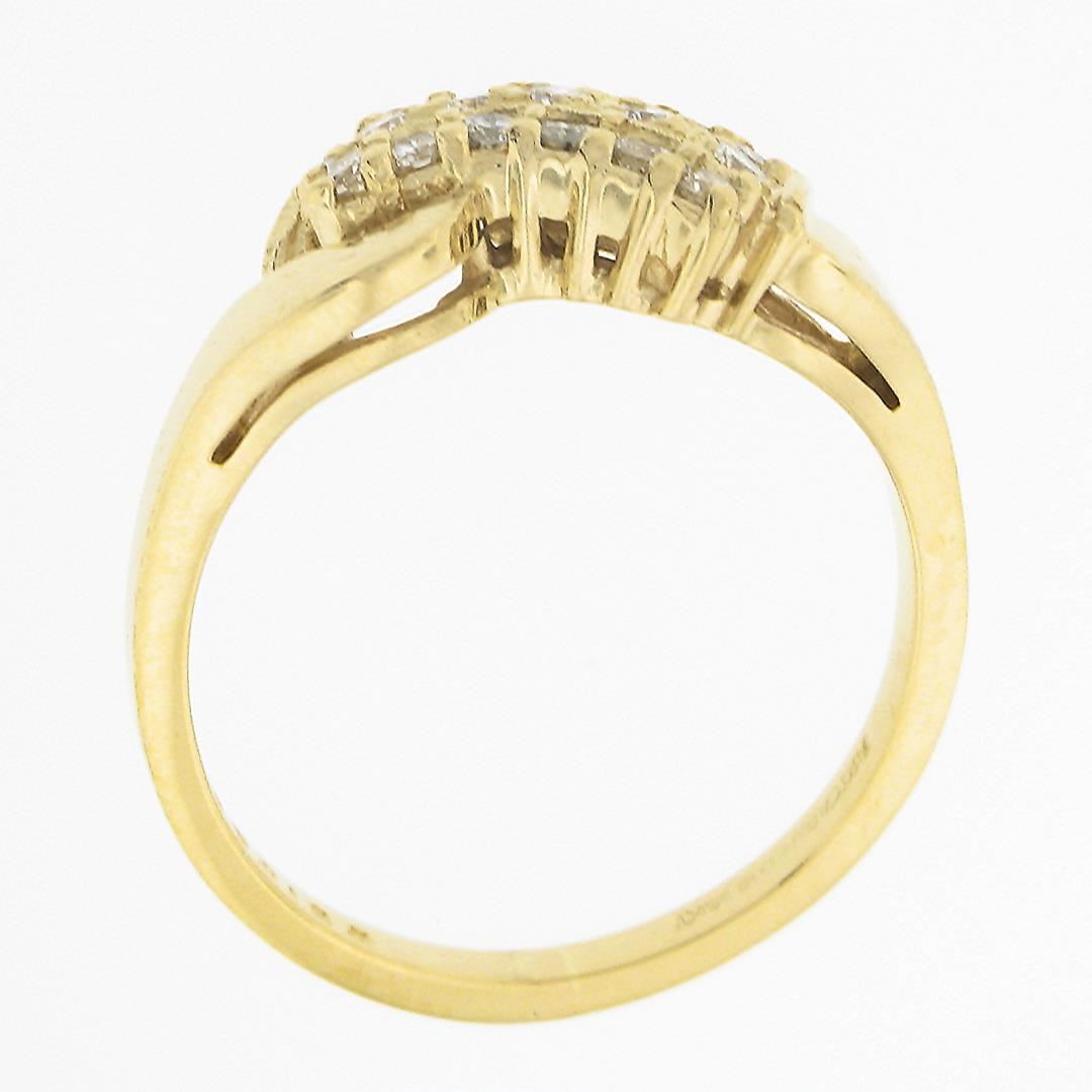 A solid 14k yellow gold 3 row ring, with 18 round brilliant cut natural diamonds (F/G - VS1/VS2 ; 0.45ctw). The ring is size 6.5, weighs a total of 4.05 grams, and measures 9.6mm wide.