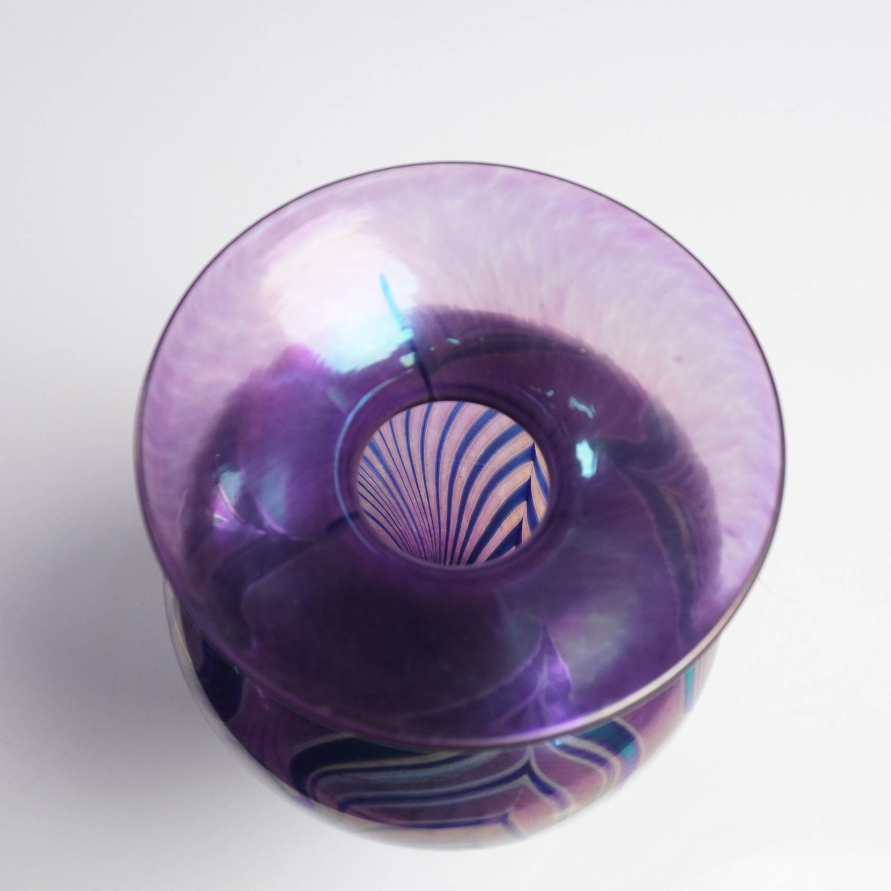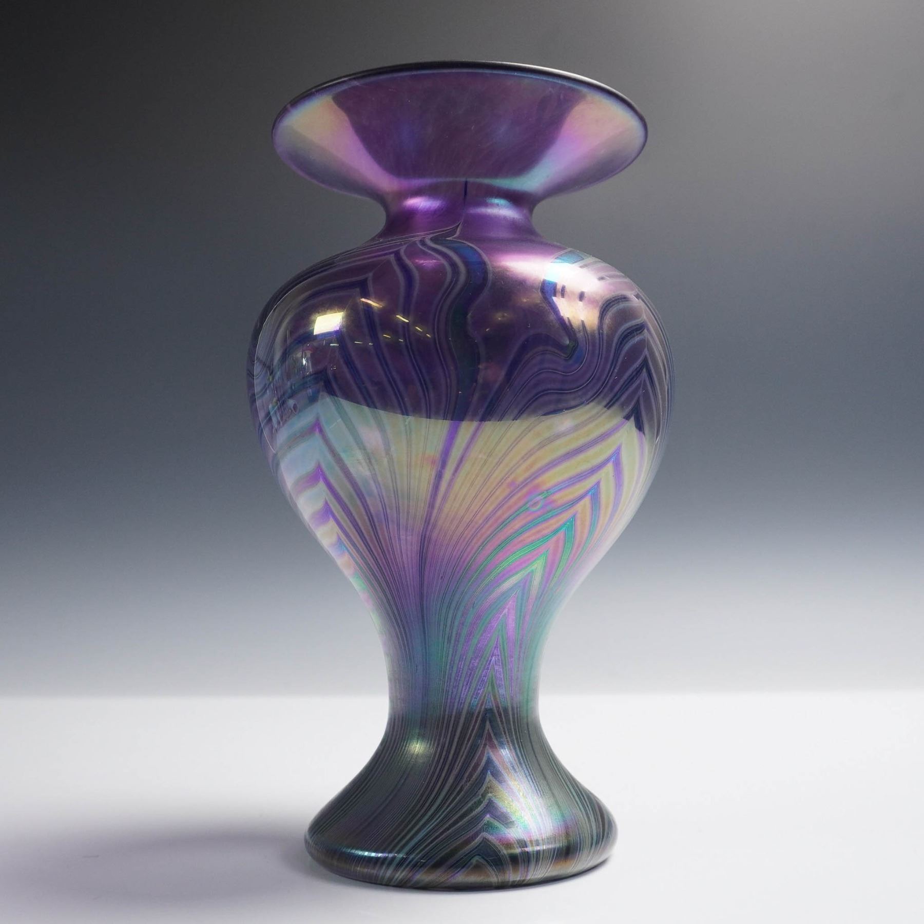 Arte Vargas Iridescent Glass Vase, Pulled Feather Design